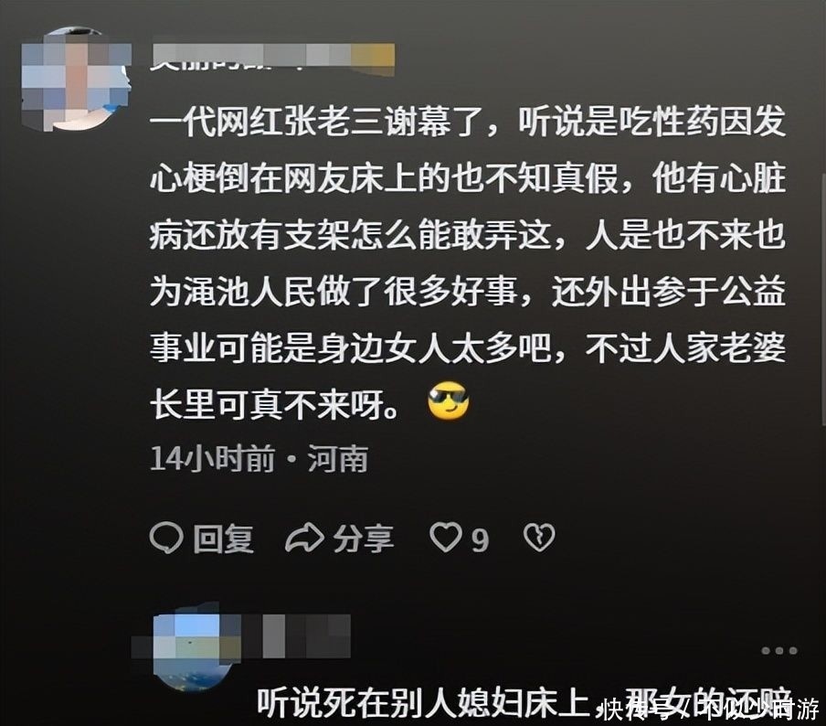 参考信息源:[1].抖音个人账号:抬头望见苏秦的云337《#好兄弟祝你一路走好!张老三》2025.11.25[2].抖音个人账号:慧慧说事 《突发!曝河南渑池知名网红张老三去世,曝原因:疑与私生活有关》2025.11.26[3].抖音个人账号:张老三6188但为提升文章可读性,细节可能存在润色,请理智阅读,仅供参考!